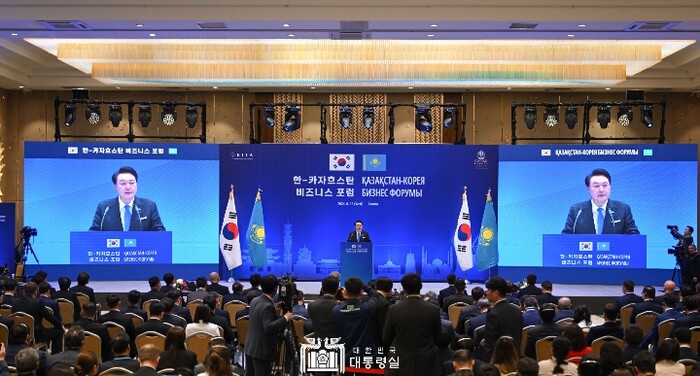 | ▲ 6월 12일 윤석열 대통령은 한-카자흐스탄 비즈니스 포럼에 참석해 양국 협력관계 구축에 기여해 온 기업인들을 격려하고, 양국의 경제협력 방향을 제시했다. |