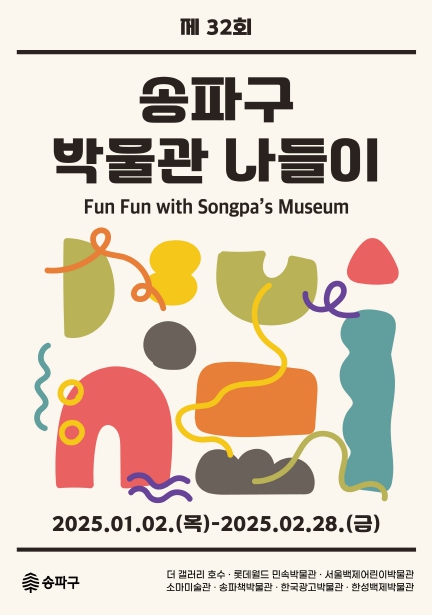 이 밖에도, 국내 최초 공립 책 박물관인 ▲송파책박물관부터 다양한 조각품을 만날 수 있는 ▲소마미술관, 백제와 조선, 선사시대 배경의 전시를 개최 중인 ▲한성백제박물관 ▲롯데월드 민속박물관 ▲서울백제어린이박물관, 공익광고를 살펴볼 수 있는 ▲한국광고박물관까지 가지각색 전시와 함께 어린이 체험프로그램이 마련돼 있다.