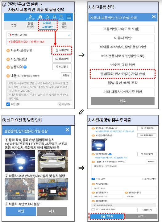 | ▲ 안전신문고 앱‘자동차·교통위반’신고방법 |