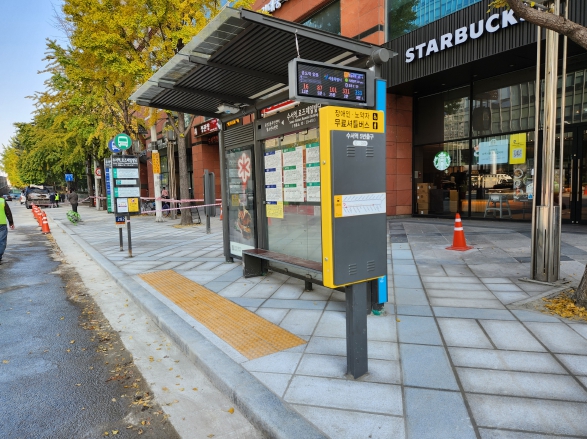 구는 지난 10월 31일 이 포켓도로를 없애고 그 위를 보도로 채우는 공사를 끝마쳤다. 보도 면적을 최대 300㎡까지 확장하고, 기존의 좁은 보도에서 설치할 수 없었던 버스승차대를 설치했다. 그동안 폭우·폭염 시 버스를 기다릴 때 불편을 겪어야 했던 버스 이용객들이 더 안전하고 편리하게 버스를 이용할 수 있게 됐다.