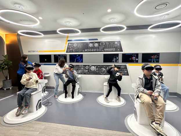 | ▲ XR존에서 우주선 수리 체험을 하는 학생들 |