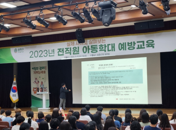 [뉴스힘=박노신 기자] 송파구가 오는 5일 오후 4시 송파구청 대강당에서 법정 아동학대신고 의무자인 사회복지시설 종사자와 공무원 300여 명을 대상으로 아동학대 예방교육을 실시한다고 알렸다.