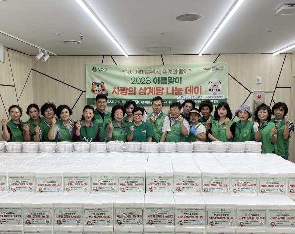 송파구새마을부녀회는 매년 관내 홀몸 어르신과 저소득층에게 여름 대표 보양식 삼계탕을 대접하며 취약계층의 건강을 살뜰하게 챙겨왔다. 올해도 거동이 불편한 어르신 등 삼복더위에 취약한 계층을 가가호호 방문하여 음식 배달로 안부를 확인할 예정이다.