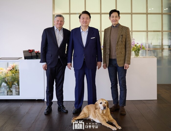 尹 대통령, 넷플릭스 테드 서랜도 공동대표와 이정재 씨 관저로 초청해 한미 문화동맹 발전 등의 주제로 대화 나눠