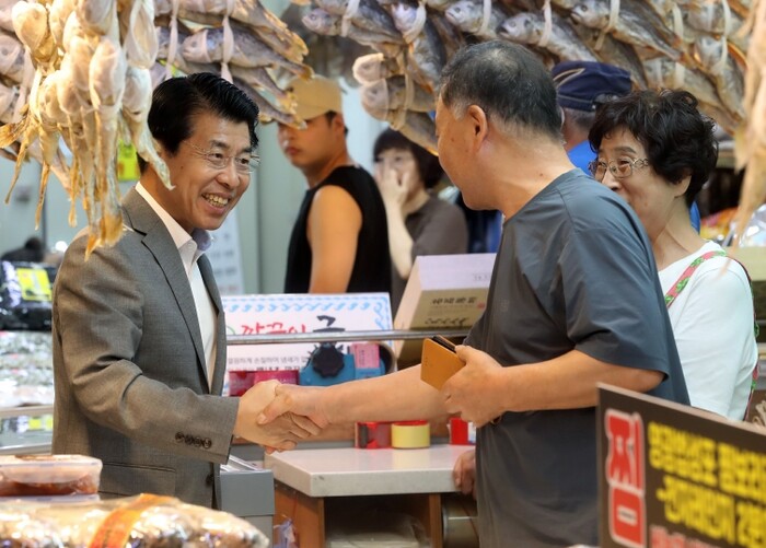| ▲ 작년 9월 가락몰 수산물 상인들을 격려하는 서강석 송파구청장 |