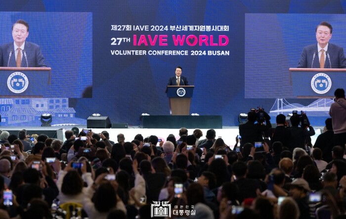 [뉴스힘=박노신 기자] 윤석열 대통령은 지난 10월 22일 오후 부산광역시에서 개최된「제27회 IAVE 2024 부산세계자원봉사대회」에 참석해 전 세계 90여 개국 800여 명의 자원봉사자를 격려하고 대회 개최를 축하했다.