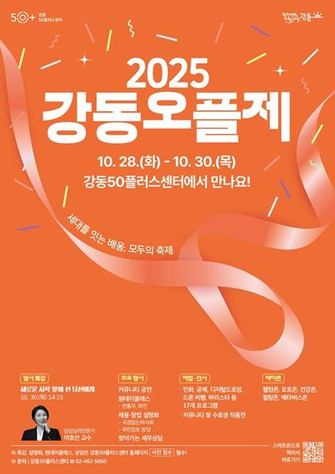 [뉴스힘=박노신 기자] 강동구는 오는 10월 28일부터 30일까지 3일간, 강동50플러스센터(올림픽로 752, 천호동)에서 ‘2025 강동오플제’를 개최한다고 24일 밝혔다.