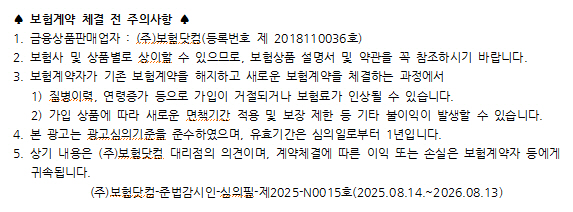 보다 자세한 가입 조건이나 적정 진단금액 설정은 비갱신형 암보험 비교사이트를 활용하여 여러 회사의 상품을 실시간으로 보험료 비교도 해볼 수 있으며, 다양한 정보를 비대면으로 주말까지 전문가와 상담이 가능하므로 3대진단비 등 종합건강보험 가입 시 편리하게 이용할 수 있다.