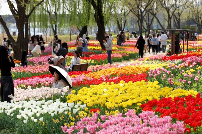[뉴스힘=박노신 기자] 서울 성동구는 중랑천 산책로 구간에 튤립 등 봄꽃이 만개하고 ‘중랑천 피크닉 정원’도 새롭게 단장하면서 주민들의 발길이 이어지고 있다고 밝혔다.