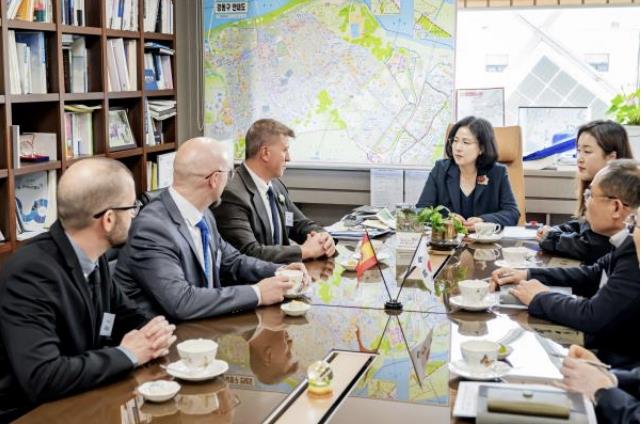 ▲ 지난해 3월 강동구를 방문해 이수희 강동구청장(왼쪽에서 네 번째)과 면담하고 있는 스페인 세고비아시 Segobex 대표(좌측)