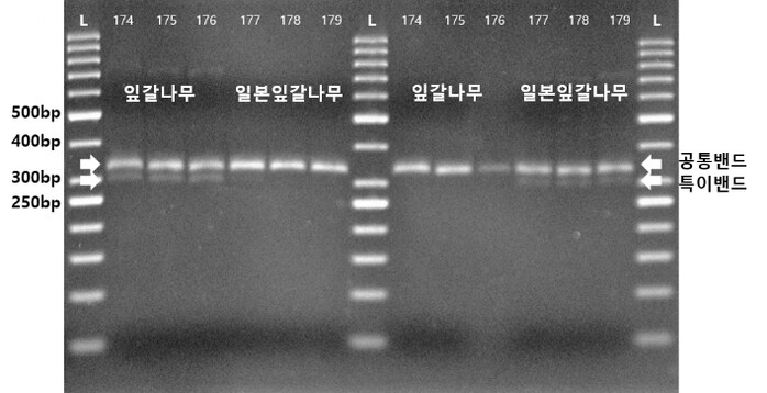 | ▲ 잎갈나무-일본잎갈나무 목재 수종식별 DNA 분석기술 활용 결과 예시 |