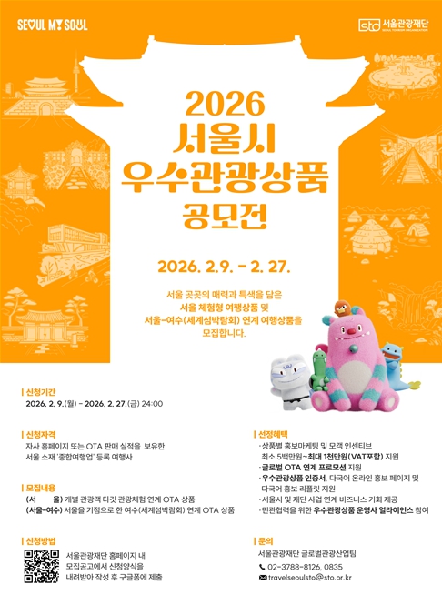 [뉴스힘=박노신 기자] 서울시와 서울관광재단은 서울의 매력을 즐길 수 있는 체험형 관광상품을 발굴‧육성하기 위해 '2026 서울시 우수관광상품 공모전'을 지난 2월 9일부터 27일까지 진행한다.
