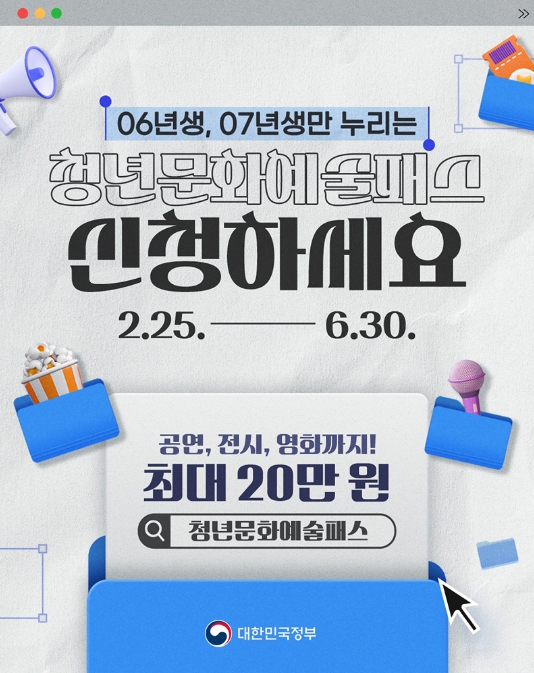 [뉴스힘=박노신 기자] 06년생, 07년생만 누리는 '청년문화예술패스' 신청하세요.