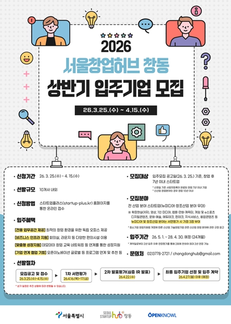 [뉴스힘=박노신 기자] 콘텐츠·XR 등 뉴미디어 산업이 빠르게 성장하며 관련 스타트업 수요가 확대되는 가운데, 동북권 창업지원 특화거점 ‘서울창업허브 창동’이 2026년 상반기 신규 입주기업 모집에 나선다.
