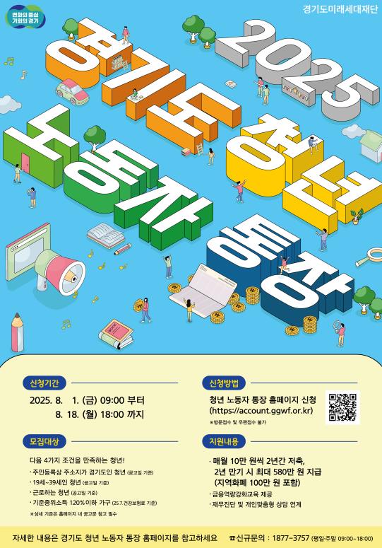 신청은 경기도 청년 노동자 통장 홈페이지에서 온라인으로 가능하며, 선정 결과는 오는 10월 2일 해당 홈페이지를 통해 발표될 예정이다.