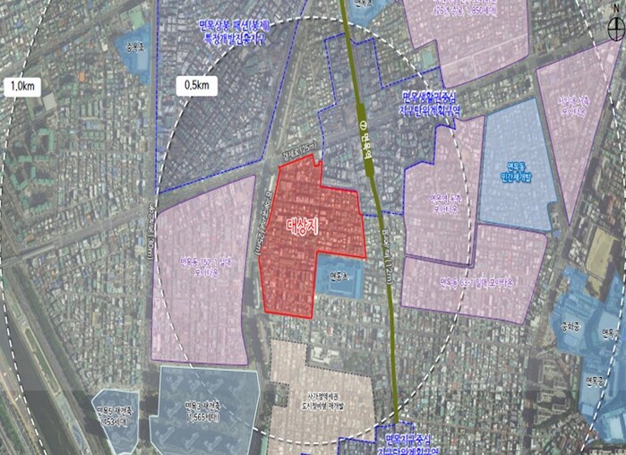 대상지는 7호선 면목역 역세권에 위치하고 있어 강남권(논현, 강남구청 등)으로 30분 내외에 진입이 가능하며, 인근에 동부간선도로가 인접해 있어 서울 도심 및 경기 북부·남부로의 이동이 용이한 지역이다. 특히 대상지 주변으로 모아타운 등 노후 저층 주거지 개선을 위한 정비사업이 추진되고 있어 주거환경이 대대적으로 개선될 예정이다.