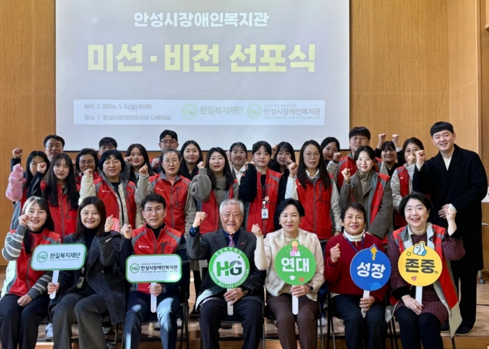 [뉴스힘=박노신 기자] 사회복지법인 한길복지재단에서 수탁하고 있는 안성시장애인복지관은 지난 5일 직원과 복지관 이용자 대표 등이 참석한 가운데 향후 5개년(2026년~2030년)의 새로운 중장기계획을 발표하는 ‘미션·비전 선포식’을 개최했다.