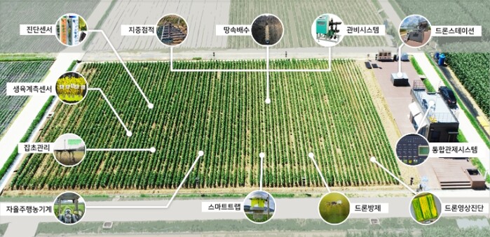 | ▲ 국립식량과학원에서 개발한 노지 스마트농업 모식도 |