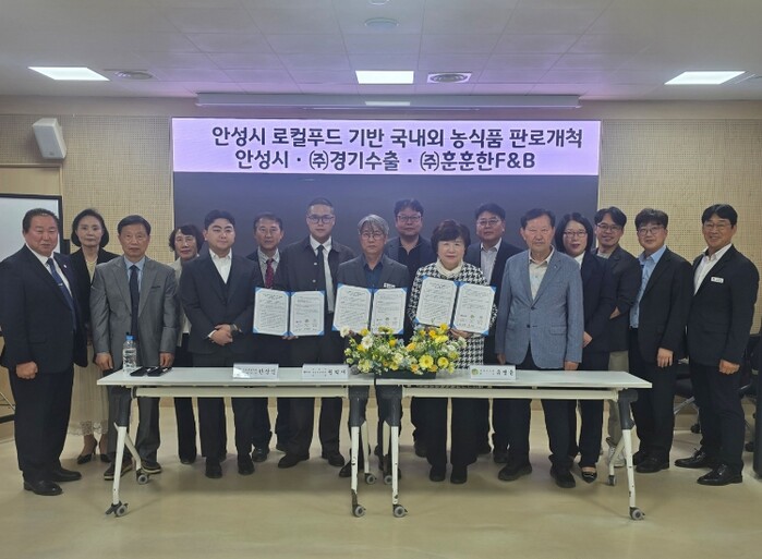 [뉴스힘=박노신 기자] 안성시 농업기술센터는 지난 4월 17일, 안성시 농특산물 및 농식품의 국내외 판로 확대를 위해 ㈜경기수출, ㈜훈훈한F&B와 전략적 업무협약(MOU)을 체결했다고 밝혔다.