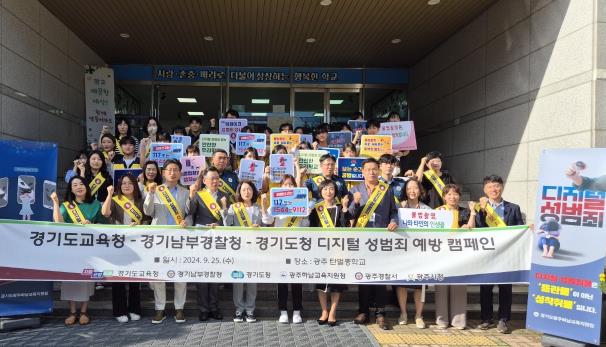 [뉴스힘=박노신 기자] 경기도교육청이 학교 내 디지털 성범죄 예방을 위해 경찰청, 경기도청과 함께 디지털 성범죄 예방 캠페인을 25일 광주 탄벌중학교에서 실시했다.