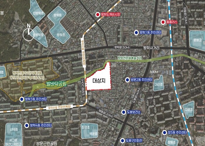 대상지는 북한산·도봉산과 인접하고 방학천과 맞닿아 있어 우수한 자연환경을 갖추고 있다. 또한 향후 우이신설선 연장에 따른 신설역이 도보권 내 들어설 예정으로, 자연과 교통 여건을 동시에 갖춘 주거지로서 높은 잠재력을 지닌 지역이다.