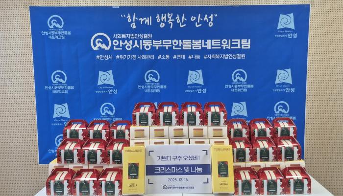 [뉴스힘=박노신 기자] 안성시동부무한돌봄네트워크팀은 지난 16일 크리스마스를 기다리며 관내 사회복지시설 7곳과 소외계층 50가정에 '크리스마스 빛 나눔'행사를 진행했다고 밝혔다.