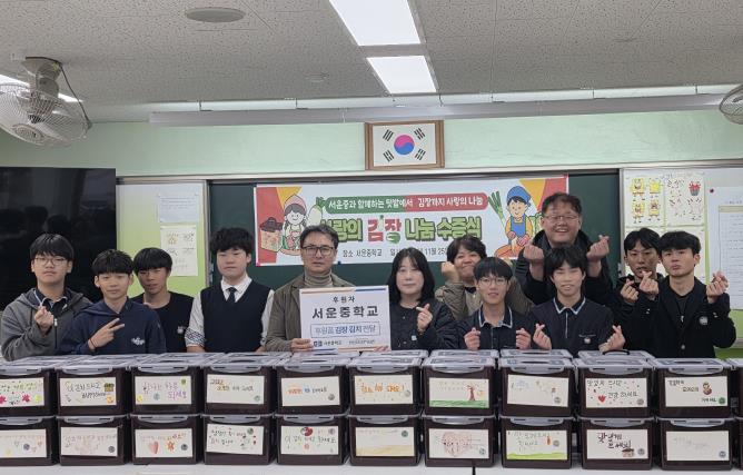 서운중학교 한건준 교장은 “학생들과 교직원들이 1년간 정성껏 키운 작물로 사랑의 김치를 담가 이웃과 나눌 수 있어 매우 뜻깊다”며 “학생들의 따뜻한 마음이 어르신들께 잘 전해져 든든한 겨울을 보내는 데 작은 도움이 되길 바란다”고 전했다.