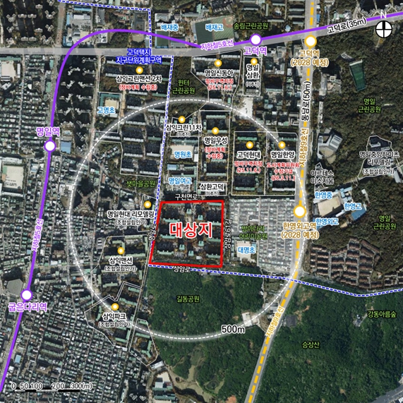 [뉴스힘=박노신 기자] 서울 강동구 고덕주공9단지가 재건축을 통해 총 1,861세대 규모의 주거단지로 탈바꿈한다. 단지 중심을 가로지르는 동서 보행축을 조성해 대명초등학교 통학환경을 개선하고, 신설 예정인 지하철 9호선 한영외고역과의 접근성도 높일 계획이다.