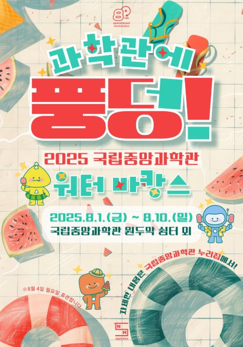 [뉴스힘=박노신 기자] 과학기술정보통신부 국립중앙과학관이 여름방학을 맞이하여 오는 8월 1일부터 8월 10일까지 10일간 여름나기 행사'과학관에 풍덩!'을 개최한다.