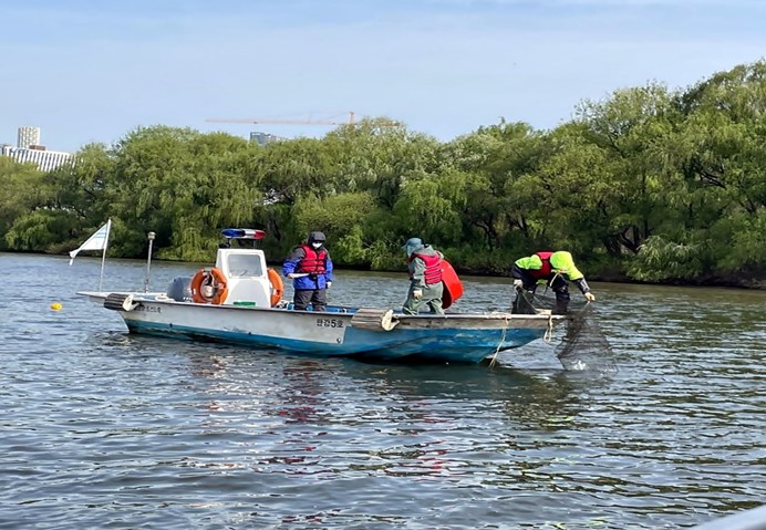 [뉴스힘=박노신 기자] 서울시는 23일 오전, 서강대교 하부 밤섬 인근에서 한강 어종조사를 실시했다. 이는 매년 2회씩 정기적으로 한강 본류 6개 지역 8개 지점에서 이뤄지는 조사다.