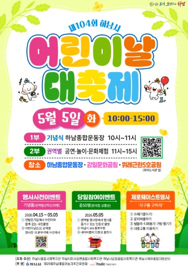 [뉴스힘=박노신 기자] 하남시는 2026년 제104회 어린이날을 맞아 오는 5월 5일, 어린이와 가족이 함께 즐길 수 있는 ‘제104회 하남시 어린이날 대축제’를 개최한다.