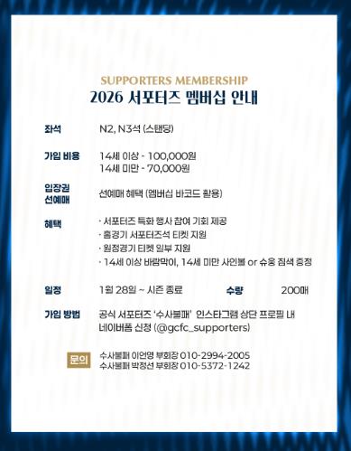 서포터즈 특화 행사 참여 기회가 제공되며, 홈경기 서포터즈석 티켓 지원, 원정경기 티켓 일부 지원 혜택도 받을 수 있다.