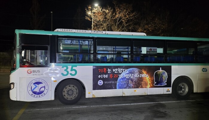 | ▲ 하남 감일고, “기후는 변했다. 이제는 행동할 때” 기후위기 메시지 싣고 버스 광고 나선다 |