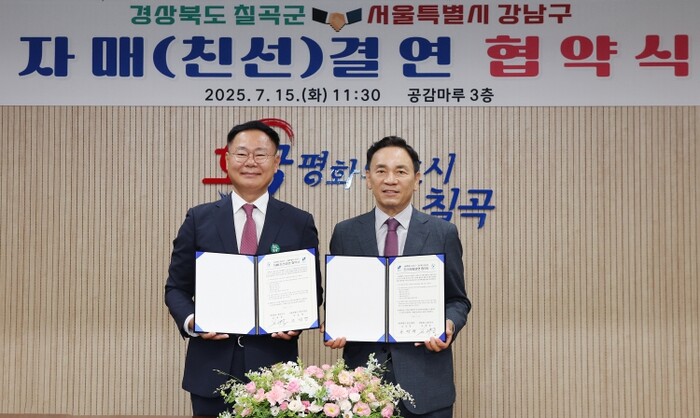 [뉴스힘=박노신 기자] 꿈이 모이는 도시, 미래를 그리는 강남구가 7월 15일 경상북도 칠곡군청에서 칠곡군과 친선 결연 협약을 체결했다.