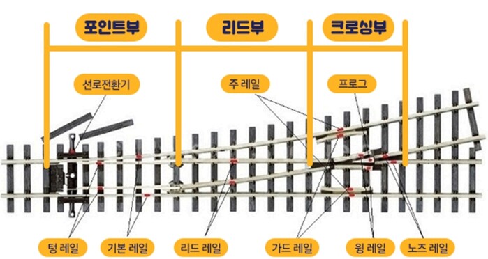 ▲ 분기기의 구조 및 부품별 명칭 -자료 출처: 국가철도공단