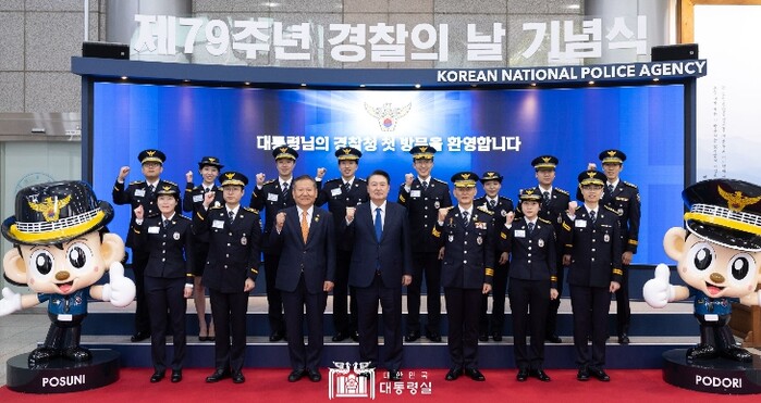 한편, 대통령은 행사를 마친 후 본관 1층에서 마약·전세사기·딥페이크를 비롯한 주요 현안 담당자, 부부 경찰 등 청년 경찰 12명과 함께 기념사진을 촬영하며 국민의 생명과 안전을 위해 노력하는 경찰들에게 격려와 응원을 보냈다.