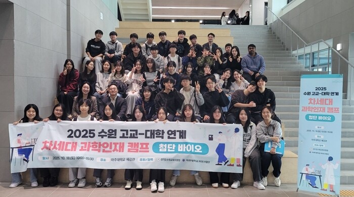 [뉴스힘=박노신 기자] 경기도수원교육지원청은 18일 아주대학교 혜강관과 원천관에서 ‘2025 수원 고교-대학 연계 차세대 과학인재 캠프’를 운영했다.