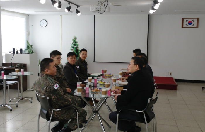| ▲ 지난 4일 안전환경국장을 비롯한 관계 직원들이 관내 1항공여단을 방문해 여단장 등 부대 관계자와 헬기 소음 저감 조치에 대해 면담을 하고 있다. |