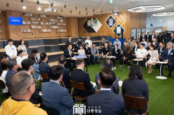 | ▲ 5월 14일 윤석열 대통령은 서울 중구 서울고용복지플러스센터에서 ‘고맙습니다. 함께 보듬는 따뜻한 노동현장’을 주제로 스물다섯 번째 「국민과 함께하는 민생토론회」를 개최했다. |
