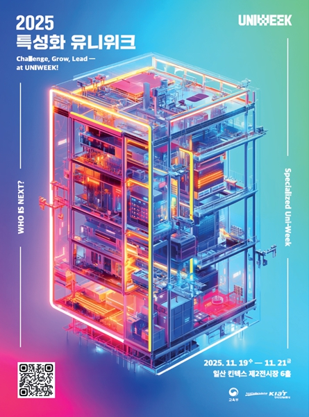 [뉴스힘=박노신 기자] 교육부와 한국산업기술진흥원(원장 민병주)은 11월 19일부터 11월 21일까지 일산 킨텍스에서 첨단산업 특성화대학 학생들을 위한 축제인 ‘유니위크(Uni-Week)’를 개최한다. 이에 앞서 11월 18일부터 특성화대학 반도체·이차전지 분야 경진대회 결선도 시작된다.