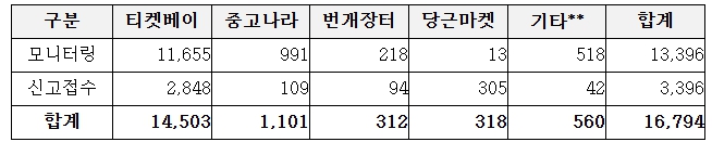 2026년 2월부터 3월까지 프로야구 암표 신고·모니터링 결과, 약 1만 6천여 건이 확인됐다. 특히 개막전(3. 28.~29.) 전후로는 정가 대비 최대 약 13배 고액 거래, 동일 계정 다량 좌석 확보 및 재판매 등 조직적 거래 정황이 다수 확인됐다. 이 중 다량·연석 판매, 과도한 웃돈 거래, 동일 계정 반복 거래 등 부정거래 의심 사례를 분석.파악해 경찰청에 수사를 의뢰했다.