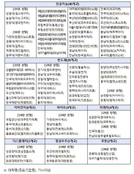 | ▲ 첨단산업 인재양성 부트캠프 사업 2026년 운영 대학 |