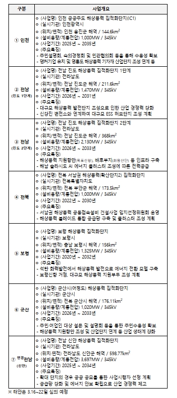 | ▲ 해상풍력 집적화단지 지정 개요 (신규 6개, 변경 1개) |