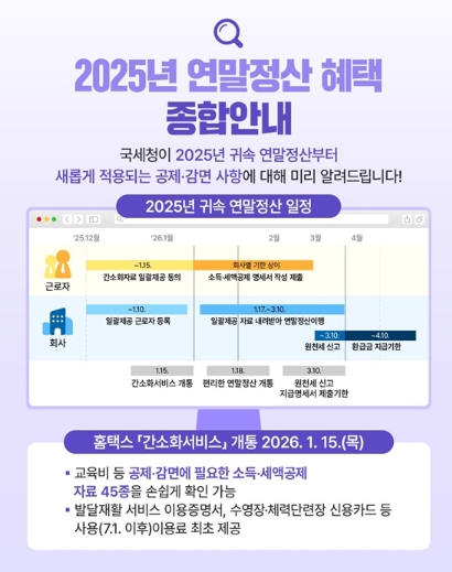· 국세청이 2025년 귀속 연말정산부터 새롭게 적용되는 공제·감면 사항에 대해 미리 알려드립니다!