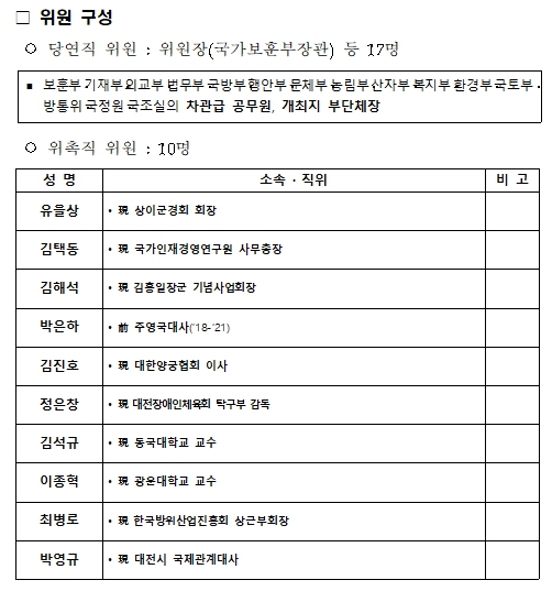 국가보훈부 장관을 위원장으로 하는 유치위원회에는 15개 정부 부처의 차관 또는 차관급 공무원인 정부위원과 국내 개최 후보 지역의 부단체장, 그리고 대한민국상이군경회장을 비롯한 보훈‧외교‧체육‧홍보 분야 민간 전문가 등 27명으로 구성됐다.