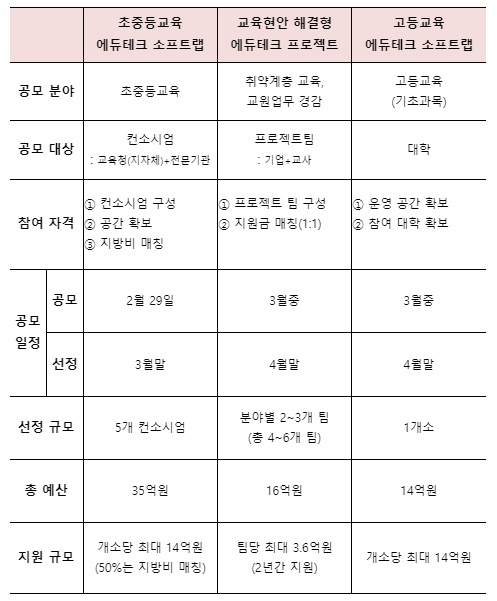 | ▲ 에듀테크 소프트랩 사업 내역별 공모 일정 |