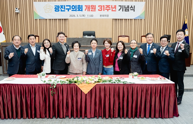 [뉴스힘=박노신 기자] 광진구의회가 지난 5일 광진구의회 본회의장에서 개원 31주년 기념식을 개최했다.