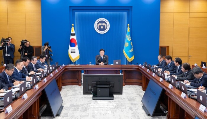이 대통령은 이날 청와대에서 열린 제31차 수석보좌관 회의에서 "인공지능 대전환으로 노동과 산업현장이 근본적 변화에 노출되게 된다. 이런 중차대한 도전을 이겨내려면 상생과 협력의 정신이 필요하다"며 이같이 밝혔다.