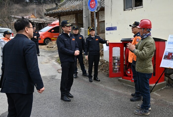 이날 최 본부장은 구례군 산동면 일원의 산림 인접 마을 비상소화장치함을 직접 찾아 장비 관리 상태와 즉시 사용 가능 여부를 면밀히 살폈다. 이 자리에서 건조 특보가 발효되는 등 산불 위험이 커질 때, 화재 발생 전 미리 주변에 물을 뿌려 연소 확대를 막는 '선제적 예비주수' 활동이 대형 화재를 막는 핵심 방어선임을 거듭 강조했다.