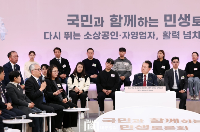 | ▲ 12월 2일 윤석열 대통령은 충청남도 공주시에서 ‘다시 뛰는 소상공인·자영업자, 활력 넘치는 골목상권’을 주제로 국정 후반기 첫 번째 「국민과 함께하는 민생토론회」를 주재했다. |
